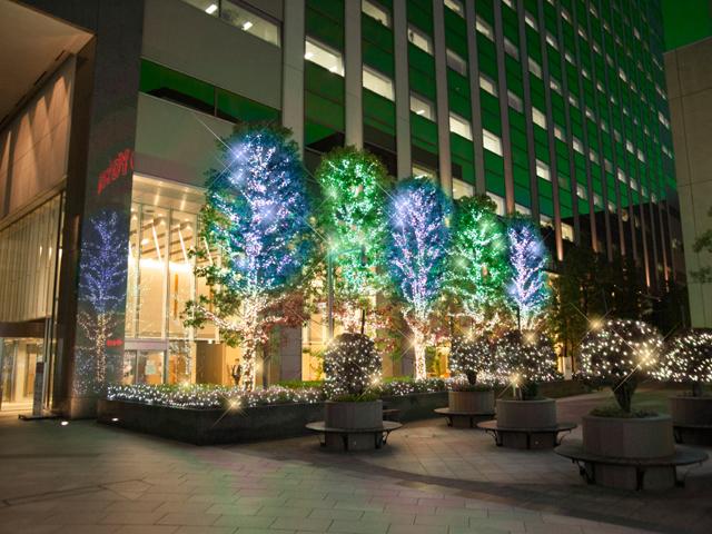 都心にできたきらびやかな空間。光による素敵な演出をお楽しみ下さい。