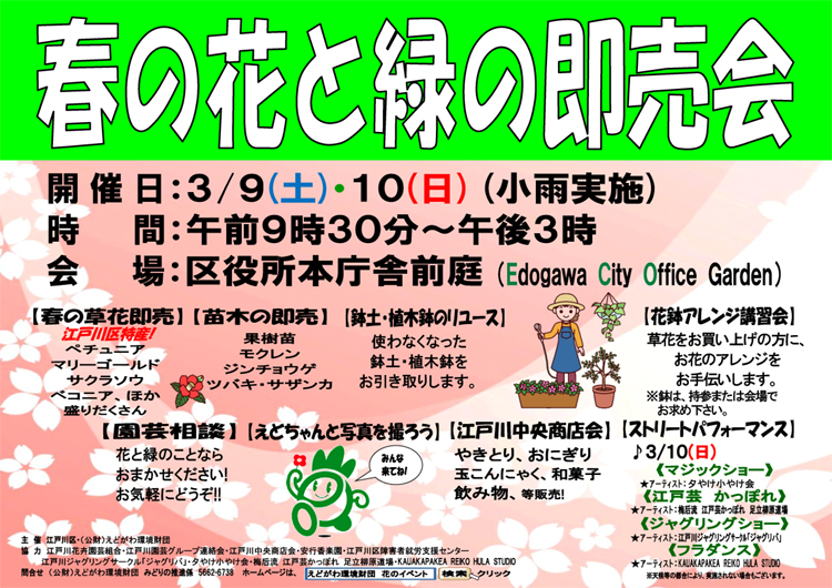 区役所本庁舎前庭 ECO(Edogawa City Office)ガーデンで「春の花と緑の即売会」が開催されます。
